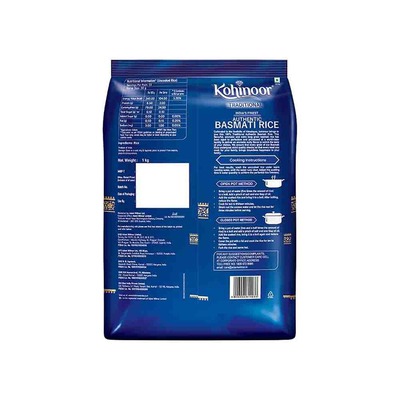 Kohinoor Platinum Authentic Basmati Rice appears from the ethernal snow fed valleys of Himalayas. It\'s cautiously picked and aged for around 1-2 years in an extremely special way. With grain length of 7.25mm. Sweet flavour and wonderful aroma. The Passion to capture nurtures and harness the true flavour of Basmati Rice, and make something so rare that only a privileged few would savour. Heavenly aroma that is beyond compare. Gluten free. Ideal for dishes like steamed rice, jeera rice, pulao, biryani etc.