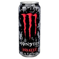 Monster Assault is a revolution in a can. Refreshing; like a soft drink but loaded with the same energy blend that makes Monster the meanest energy drink on the planet. Assault packs a punch with 160mg of caffeine and has a smooth, easy Bourbon-Cola flavor.